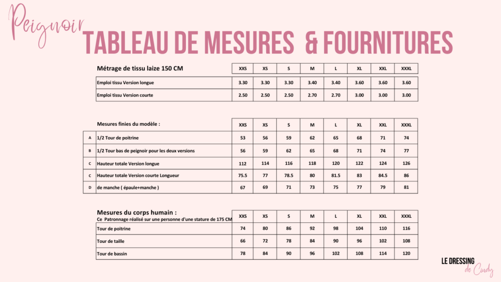 Patron de peignoir gratuit femme & homme du XXS au XXXL