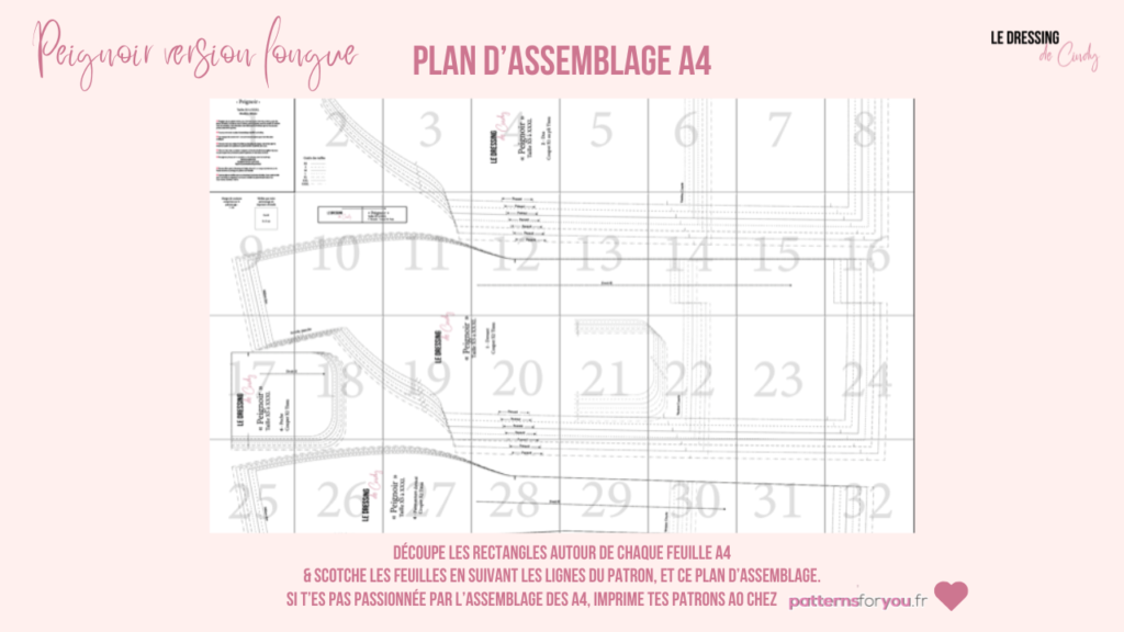 ♡ Tu pourras coudre ce patron peignoir dans 2 longueurs, ainsi tu as 2 plans d’assemblage pour les patrons.