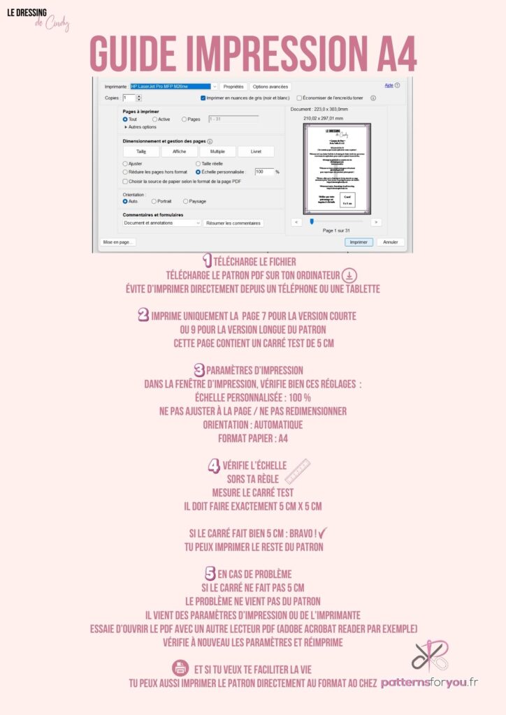 Si tu as une passion dévorante pour le format A4 , rassures toi, tu recevras le patron en PDF dans les formats A0 et A4. Mais tu verras l’impression en A0 PATTERNS FOR YOU ça change la vie.