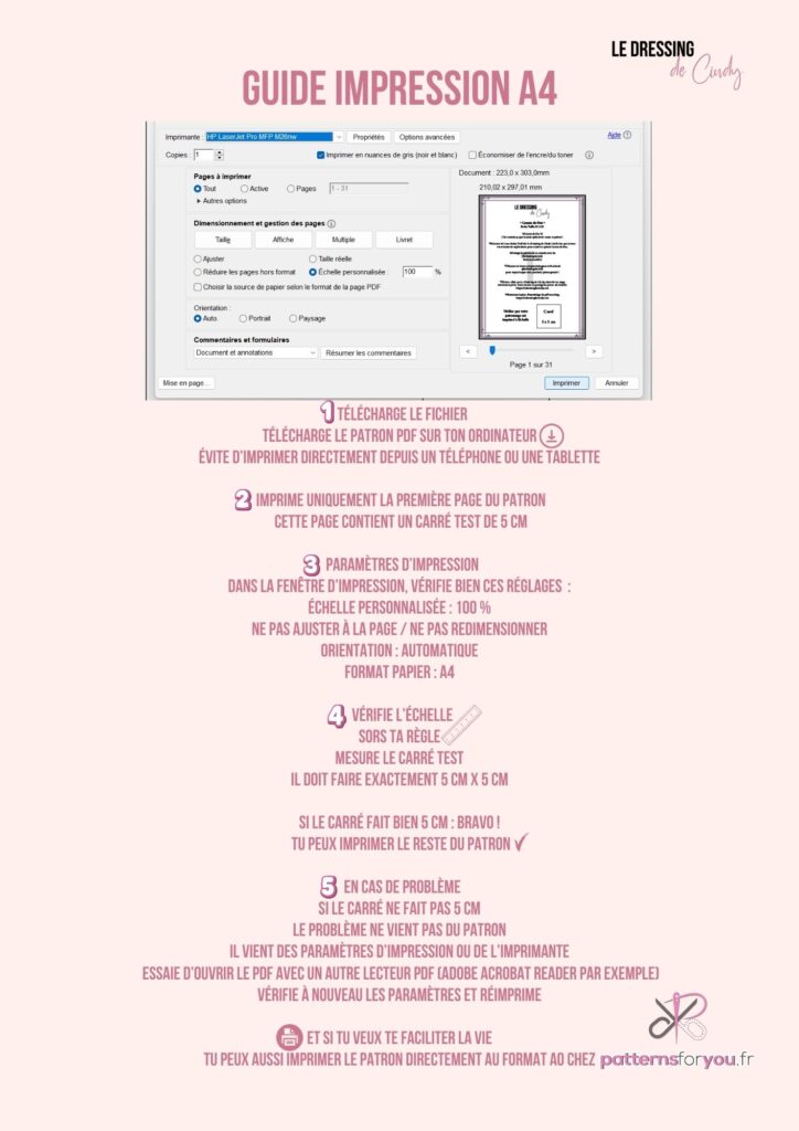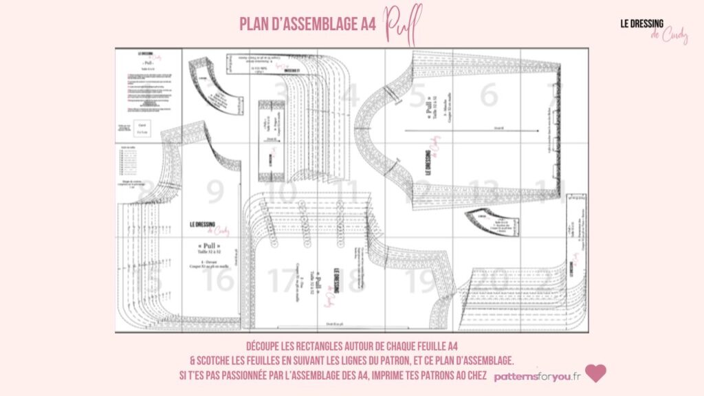Si tu as une passion dévorante pour le format A4 , rassures toi, tu recevras le patron en PDF dans les format A0 et A4. Mais tu verras l’impression en A0 PATTERNS FOR YOU ça change la vie, et en plus tu verras, le prix est hyper intéressant.